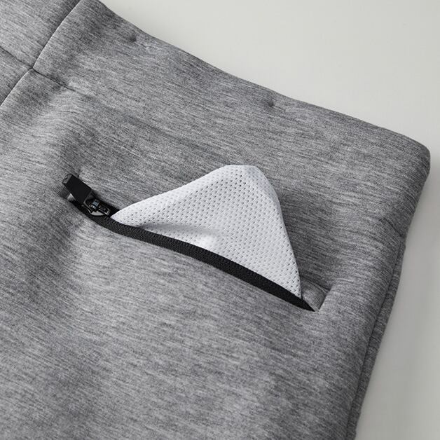 2枚の生地を中糸で繋ぎあわせたダンボールニット生地のパンツ。生地の中に空気の層ができるため、軽量で、保温性は折り紙つき。肌寒い季節には特に重宝すること間違いなしの一枚です。ワタリ幅は広すぎず、ゆるやかにテーパードしたすっきりめのシルエットが動きやすさも担保しています。